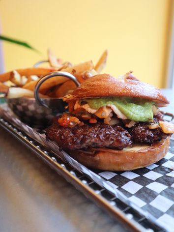 grilled chicken breast, gochujang sauce, avocado, pickled red onions, arugula, deep fried wontons, garlic-rosemary mayo, choice of bun 24.95